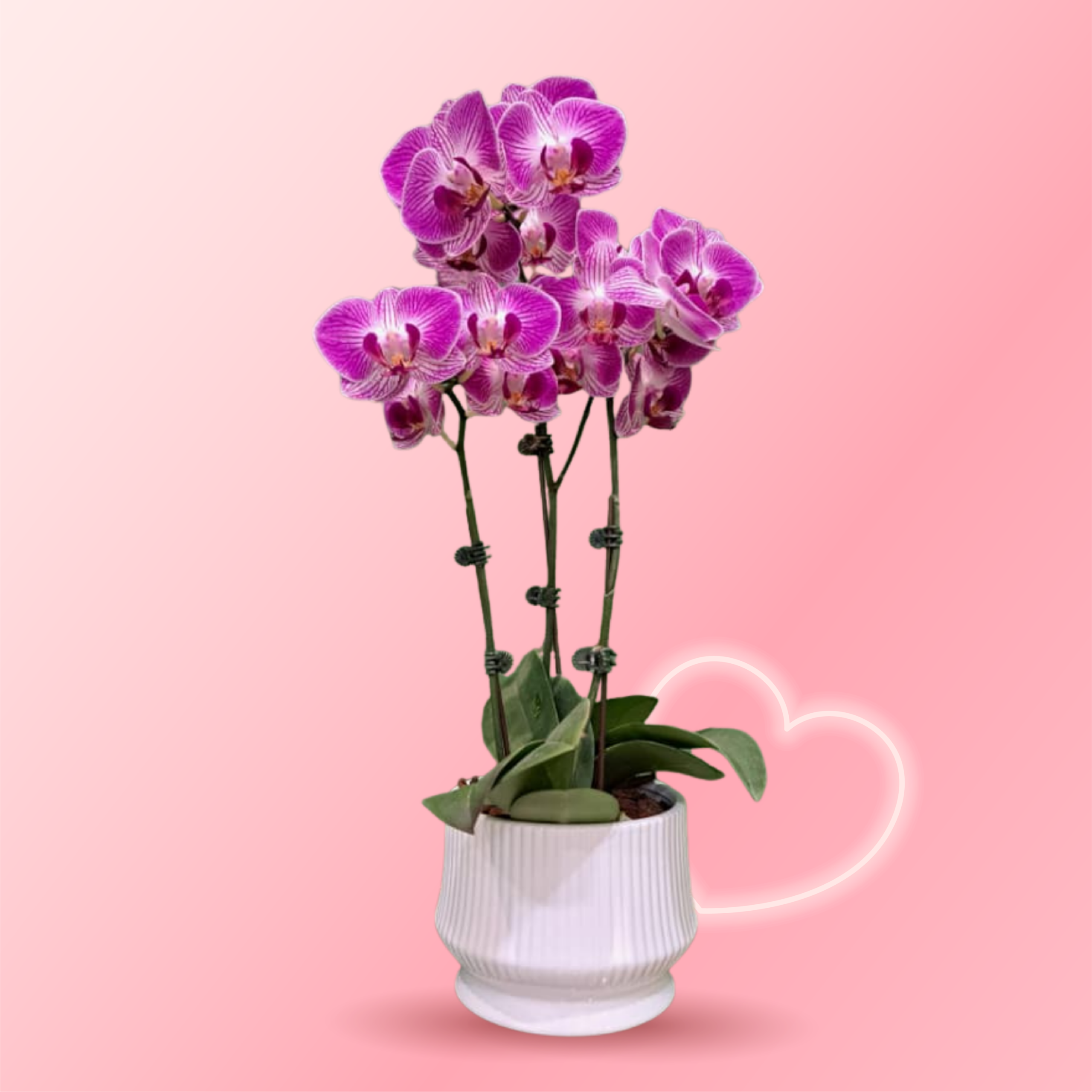 3in1 Pink Phalaenopsis orchid in a modern ceramic pot.